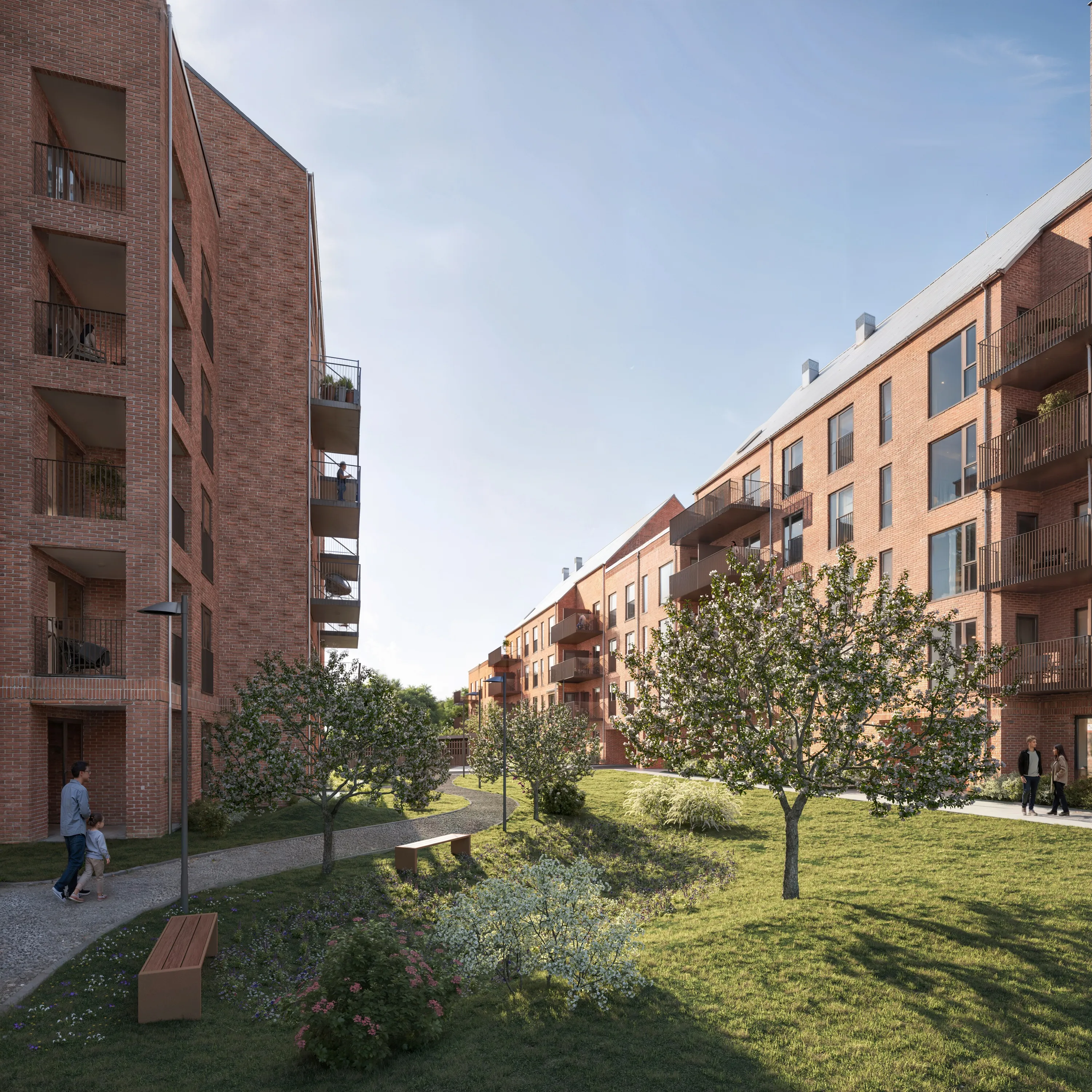 Projektet er udført med en variation af både indeliggende og påhængte altaner i stål med lakeret værn og trædæk. Der er udført trappeopgange med trapper i terrazzo og gulve i tilsvarende italienske specialproduceret terrazzofliser i eksklusiv kvalitet.