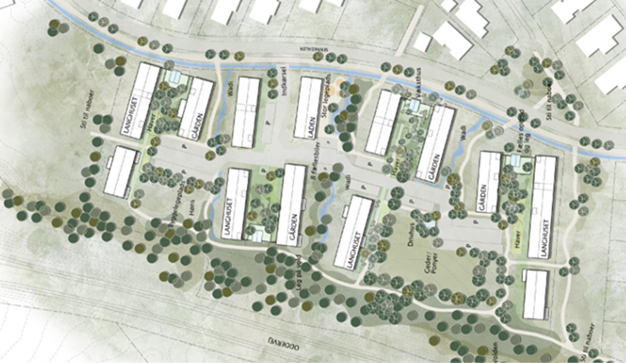 Der bliver i området plantet adskillige træer som kommer til at skabe meget natur hvor omtanke og respektfor natur og jordens ressourcer er fælles værdier. Hvilket understøtter visionen om en tæt forbindelse mellem natur og fællesskab.